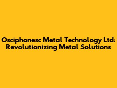 Hey guys! Ever wondered about the cutting-edge innovations happening in the world of metal technology? Let's dive into Osciphonesc Metal Technology Ltd, a company that's been making waves with its groundbreaking approaches and solutions. We’re going to explore what makes them stand out, their specializations, and why they’re a key player in the modern metal industry. So, buckle up and get ready for an insightful journey!