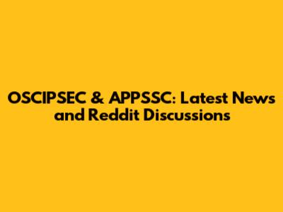 OSCIPSEC & APPSSC: Latest News And Reddit Discussions