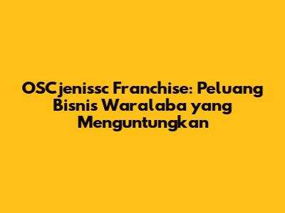OSCjenissc Franchise: Peluang Bisnis Waralaba Yang Menguntungkan