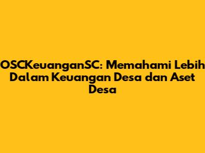 OSCKeuangansc: Panduan Lengkap Untuk Desa Dan Aset Desa