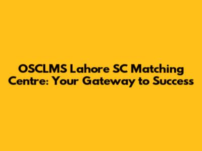 OSCLMS Lahore SC Matching Centre: Your Gateway To Success