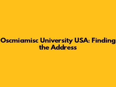 Oscmiamisc University USA: Finding The Address