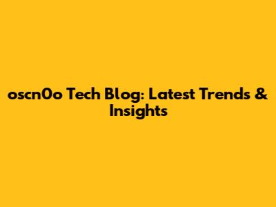 Oscn0o Tech Blog: Latest Trends & Insights