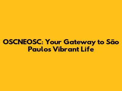 OSCNEOSC: Your Gateway To São Paulo's Vibrant Life