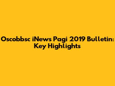 Oscobbsc INews Pagi 2019 Bulletin: Key Highlights
