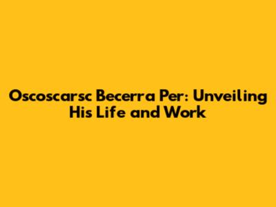 Hey everyone! Today, we're diving deep into the life and work of Oscoscarsc Becerra Per. Ever heard the name? If not, you're in for a treat! We're going to explore his biography, career trajectory, and the lasting impact he's made. Buckle up, because it's going to be a fascinating ride.