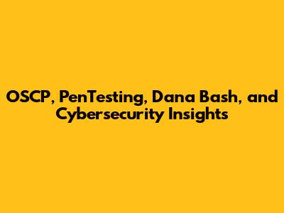 OSCP, PenTesting, Dana Bash, And Cybersecurity Insights