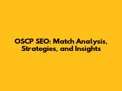 OSCP SEO: Match Analysis, Strategies, And Insights