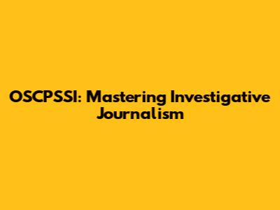 OSCPSSI: Mastering Investigative Journalism