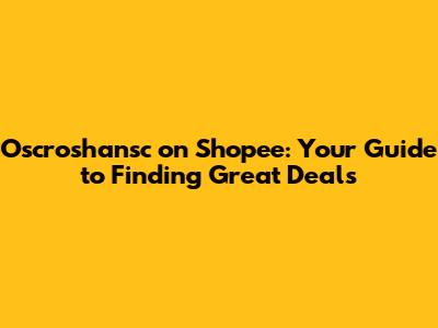 Oscroshansc On Shopee: Your Guide To Finding Great Deals