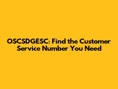 OSCSDGESC: Find The Customer Service Number You Need