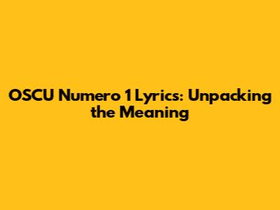 OSCU Numero 1 Lyrics: Unpacking The Meaning