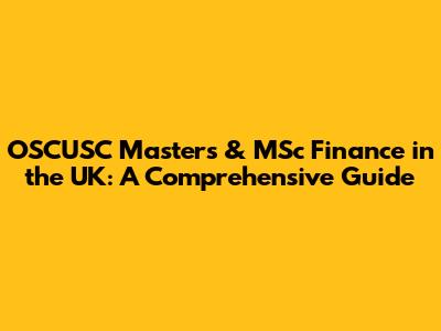 OSCUSC Masters & MSc Finance In The UK: A Comprehensive Guide