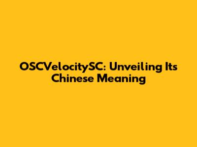 OSCVelocitySC Meaning: Decoding Chinese Translations