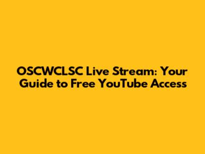 OSCWCLSC Live Streams: Watch Free On YouTube