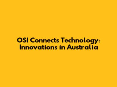 OSI Connects Tech: Innovations In Australia