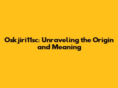 Oskjiri11sc: Unraveling The Origin And Meaning