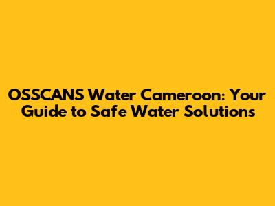 OSSCANS Water Cameroon: Your Guide To Safe Water Solutions
