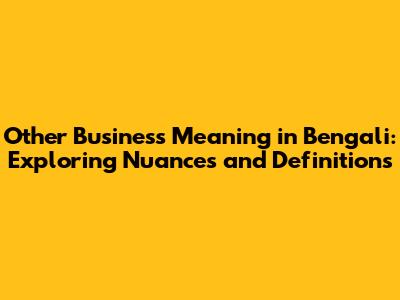 Other Business In Bengali: Meanings And Nuances
