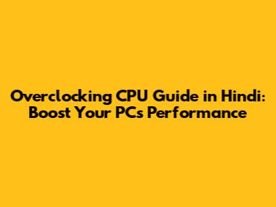 Overclocking CPU Guide In Hindi: Boost Your PC's Performance