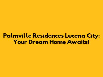 Palmville Residences: Your Dream Home In Lucena City