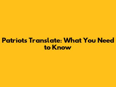 Patriots Translate: What You Need To Know