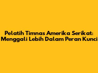 Peran pelatih USMNT sangat vital dalam membentuk timnas yang kuat dan berprestasi. Mereka memiliki tanggung jawab besar dalam berbagai aspek, mulai dari pemilihan pemain hingga strategi permainan.