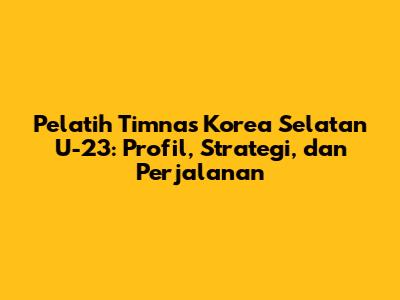 Pelatih Timnas Korea Selatan U-23: Profil, Strategi, Dan Perjalanan