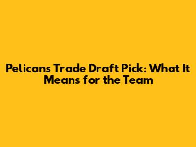 Pelicans Trade Draft Pick: What It Means For The Team