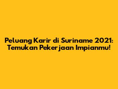 Peluang Karir Di Suriname 2021: Temukan Pekerjaan Impianmu!