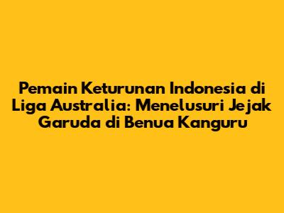 Pemain keturunan Indonesia di Liga Australia telah menjadi topik menarik dalam beberapa tahun terakhir, guys. Kita semua tahu, sepak bola adalah olahraga yang sangat digemari di Indonesia, dan melihat pemain berdarah Indonesia beraksi di liga profesional di luar negeri selalu membanggakan. Artikel ini akan membahas secara mendalam tentang pemain-pemain keturunan Indonesia yang bermain di A-League, liga sepak bola utama di Australia. Kita akan melihat siapa saja mereka, bagaimana performa mereka, dan apa dampak mereka bagi perkembangan sepak bola di kedua negara. Penasaran kan?