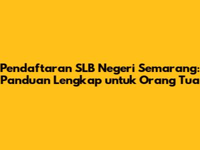 Pendaftaran SLB Negeri Semarang: Panduan Lengkap Untuk Orang Tua