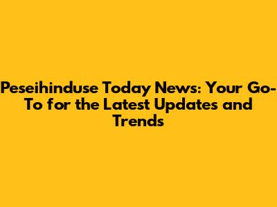 Peseihinduse Today News: Latest Updates & Trends