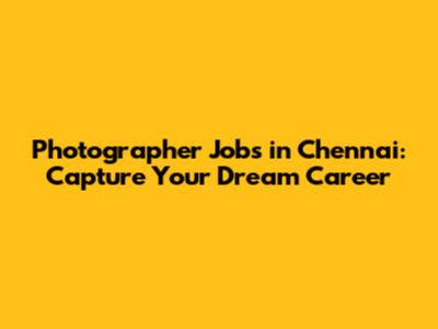 Photographer Jobs In Chennai: Capture Your Dream Career