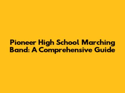 Pioneer High School Marching Band: A Comprehensive Guide