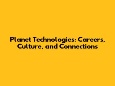 Planet Technologies: Careers, Culture, And Connections