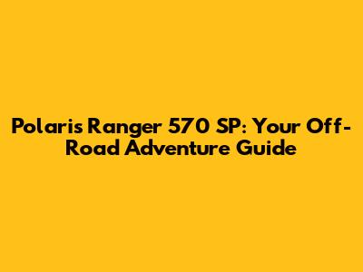 Polaris Ranger 570 SP: Your Off-Road Adventure Guide