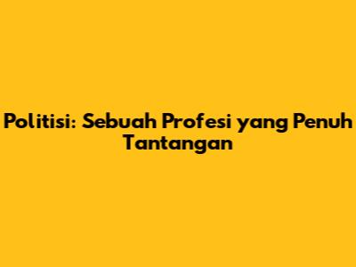 Politisi: Sebuah Profesi Yang Penuh Tantangan