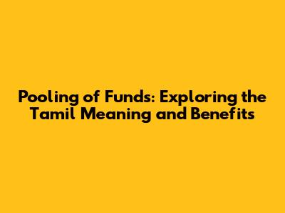 Pooling Of Funds: Understanding The Tamil Meaning & Benefits