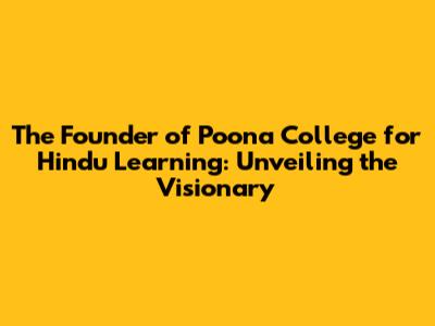 Poona College Of Hindu Learning Founder: Who Started It?