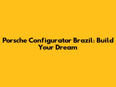 Porsche Configurator Brazil: Build Your Dream