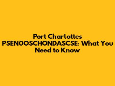 Port Charlotte's PSEN0OSCHONDASCSE: What You Need To Know