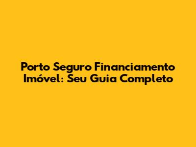 Porto Seguro Financiamento Imóvel: Tudo Que Você Precisa Saber!