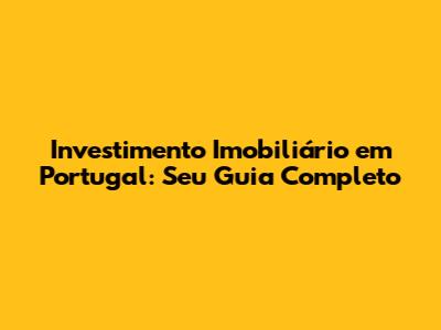 Portugal: Seu Guia Completo Para Investimento Imobiliário