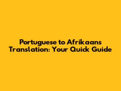 Portuguese To Afrikaans Translation: Your Quick Guide