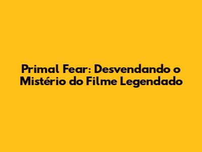 Primal Fear Filme Completo Legendado: Uma Experiência Imersiva