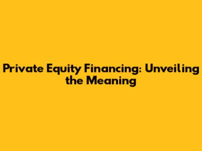 Private Equity Financing: Unveiling The Meaning