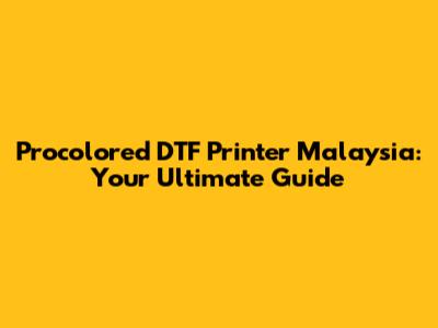 Finding a Procolored DTF Printer in Malaysia: Where to Buy?