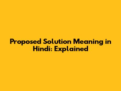 Proposed Solution Meaning In Hindi: Explained