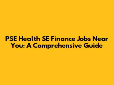 PSE Health SE Finance Jobs Near You: A Comprehensive Guide